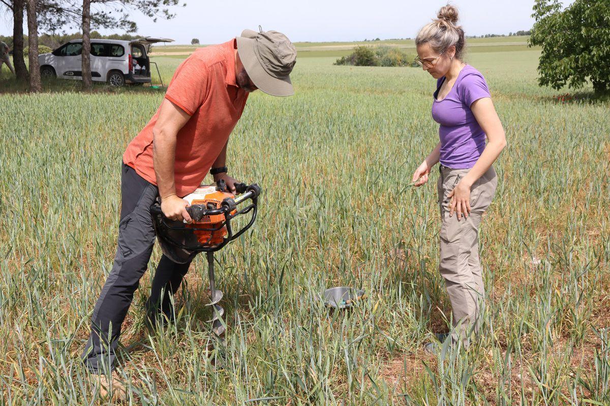 Técnicos do proxecto Soilbio, tomando mostras nunha parcela de cultivos herbáceos en sementeira directa, na Comunidade de Madrid. / Joaquín Terán.
