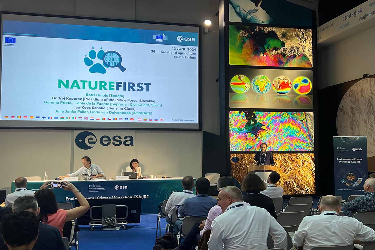 Boris Hinojo de 3edata, Jan Kees de Sensing Clues, Janka Faller e Linda van Duivenbode de dotSPACE, Ondrej Koporec do Presidium da Policía (Eslovaquia), así como Gemma Prieto e Tania de la Fuente da Unidade Central Operativa Medioambiental do SEPRONA (UCOMA-SEPRONA) foron os encargados de presentar os resultados preliminares do proxecto en Italia.