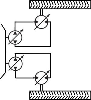 Figura 2. Esquema simplificado de disposición de bomba hidráulica y motores hidráulicos para la trasmisión de potencia a las orugas