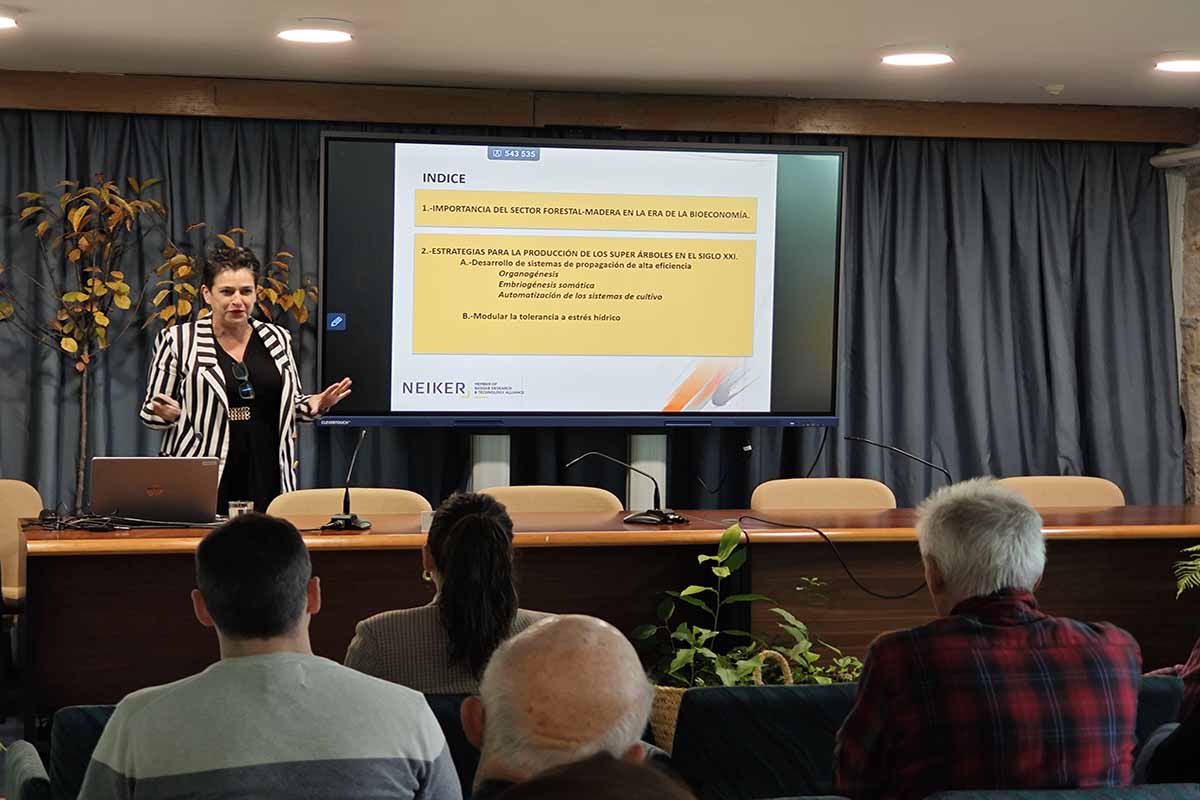 Paloma Moncaleán, investigadora do Instituto Neiker, no País Vasco, explica as técnicas que empregan para a mellora xenética de diversas especies, tanto coníferas como frondosas