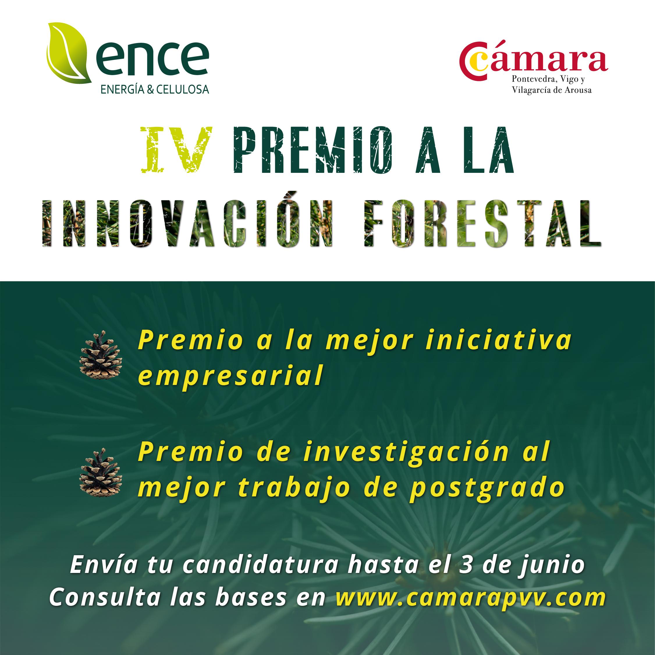A Cámara de Comercio de Pontevedra, Vigo e Vilagarcía de Arousa convoca o “IV Premio Cámara de Comercio – ENCE á Innovación Forestal”, a través do Programa Marco de Responsabilidade Social Corporativa de ENCE 2023.