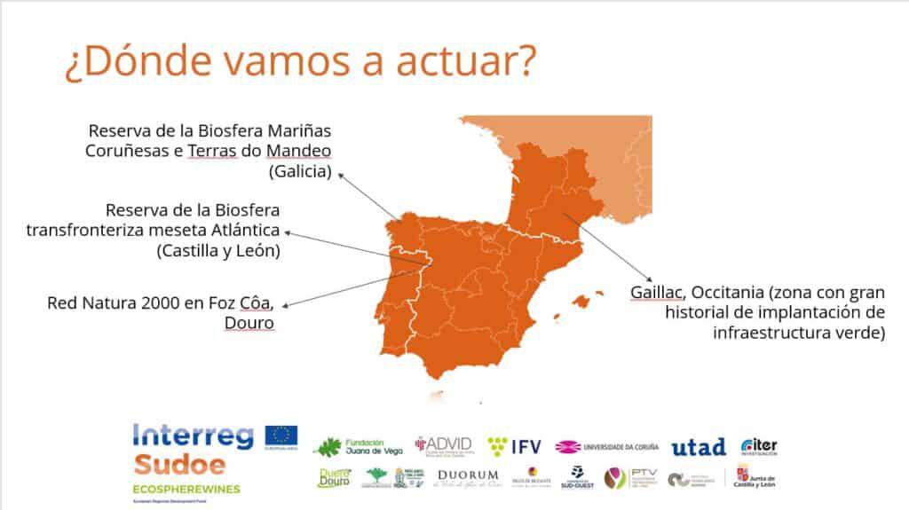 Para abordar este reto, o proxecto apóiase tecnicamente en catro zonas experimentais localizadas no sur de Francia e en España e Portugal. En Galicia, o piloto está localizado na Adega Pagos de Brigante en Paderne, en plena Reserva da Biosfera Mariñas Coruñesas e Terras do Mandeo.